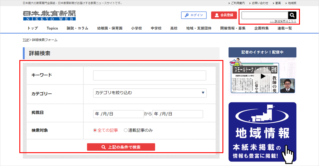 ①日本教育新聞で掲載された過去20年分の教育情報、本紙未掲載の地域の教育情報、毎日更新される教育ニュースを読むことができます。