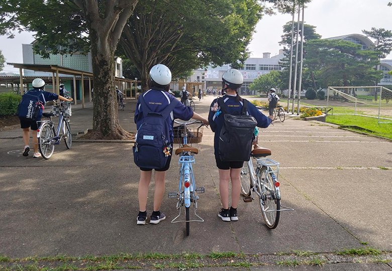 13面記事 入学時、自転車通学者全員にヘルメットを支給~軽くて涼しい自転車用ヘルメットが生徒に好評~