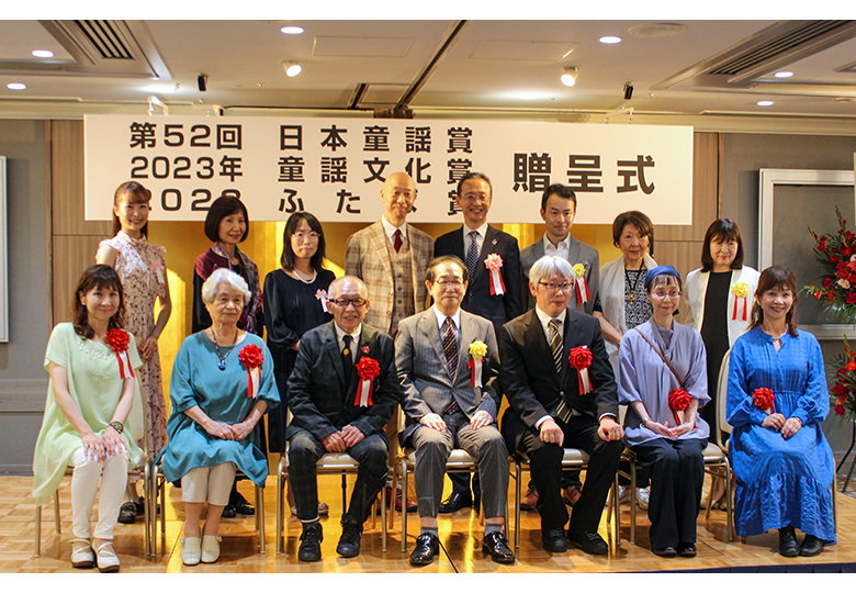 4面記事 贈呈式集合写真 東京書籍 一般社団法人日本童謡協会は、6月29日に東京ガーデンパレス(東京都文京区)で、第52回日本童謡賞と2023年童謡文化賞の贈呈式を開催した。 鈴木三重吉氏による童話と童謡の…