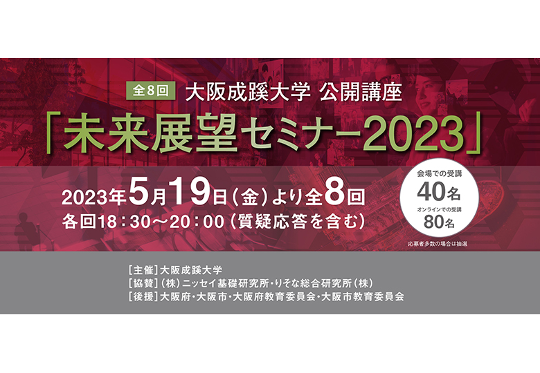3月31日まで参加者募集中 大阪成蹊大学(大阪府大阪市東淀川区相川1丁目3番7号、武蔵野實学長)は、公開講座「未来展望セミナー2023」を5月19日より全8回で開催する。 4年目となる同セミナーでは…