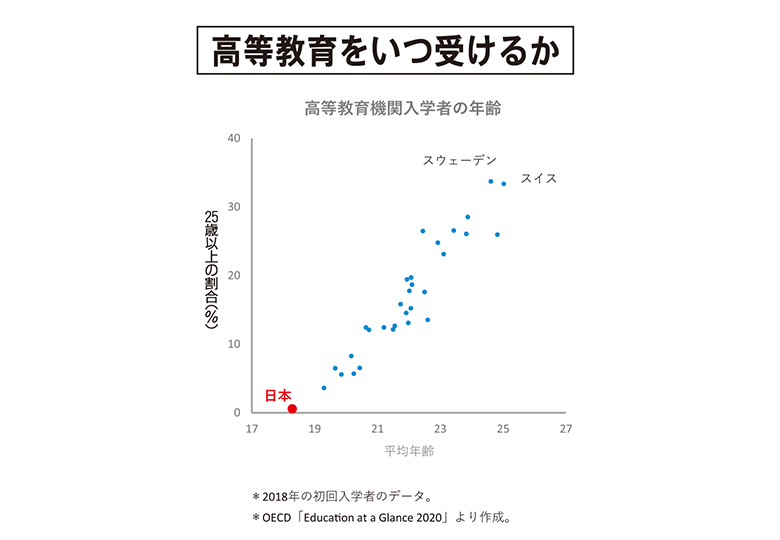 2面記事 数字が語る日本の教育 高等教育をいつ受けるか
