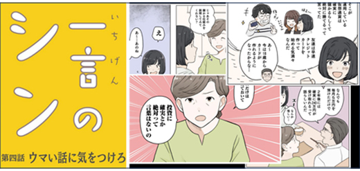 「一言のシン」は、高校生のシンと中学生のマユリが、身近に起こる出来事を通じて「会計」を学んでいく物語。今回、コンテンツページで紹介したのは第4話「ウマい話に気をつけろ」だ。シンの周りでもうけ話やウマい話の勧誘があり、話に乗って良いか、何を根拠に判断すれば良いのか、悩み考えるストーリーとなっている。成年年齢の引き下げとともに、18歳から未成年者取消権が認められなくなった。同動画コンテンツでは、もうけ話やウマい話に出くわしたときの大事な考え方を学ぶことが可能だ。