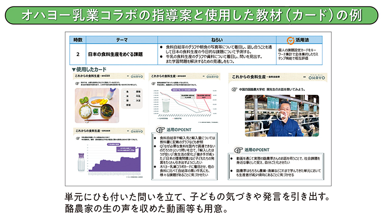 その中で、教科書だけでは足りない、子どもの生活導線に近づけるために教材として利用したのが、自身が監修した「オハヨー乳業コラボコンテンツ」だ。これにより社会課題に向き合う同社の取り組みや、担い手不足の中でも安定した生産を続ける酪農家の技術や姿を知ることで、一人一人が身近な問題として捉え、”自分ごと“として考えさせるのがねらいになる。