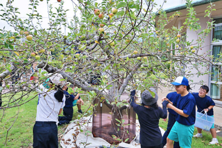 特別支援学校(茨城・大子町) 残暑の中、茨城県立大子特別支援学校(江幡覚校長)の児童・生徒が10日、校内で実ったリンゴを収穫した=写真。収穫したリンゴはすぐに洗浄。食用とする他、教材としても活用する...