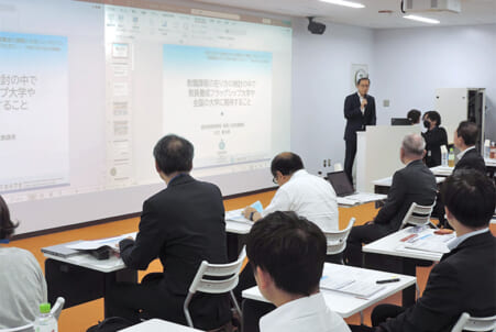 シンポジウムで基調講演に立つ大江氏(右奥) 教員養成フラッグシップ4大学 文科省が「教員養成フラッグシップ大学」に指定した4大学が先月、各大学の成果を他大学にも提供することを目的に、「4大学協議会」...