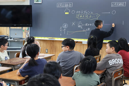 「くらしの時間」で目標達成に向け、自らの取り組みを紹介する児童 富山市立堀川小学校 (上)  自分は今どうしたいのか、これからどうありたいのか…。自らの「生き方」を追究し、行動を起こす子どもの姿に着目...