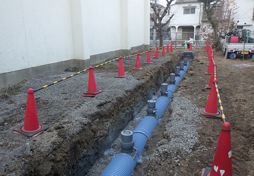 「災害用マンホールトイレ」の貯留管の設置工事