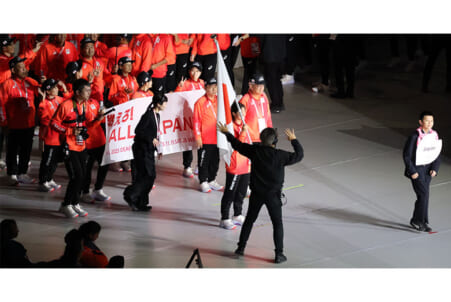 日本初開催で、聴覚障害のある人の国際スポーツ大会「東京2025デフリンピック」が15日、開幕した。東京体育館で行った開会式では、渋谷区立原宿外苑中学校の生徒たちが、選手団入場時にプラカード係を務めた。