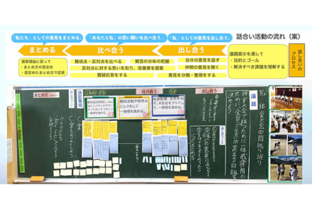 岐阜・恵那市立恵那東中学校(下) アンケートなど踏まえ議題設定 議論の流れ示し、合意形成図る成長が感じられる振り返りに 特別活動に重点を置く岐阜県恵那市立恵那東中学校(西尾新校長、生徒392人)。本...