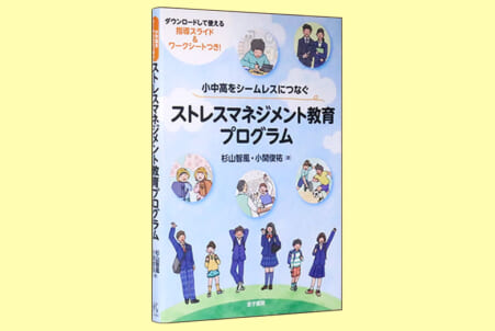具体的には、本書の大半を占める小学校低・中・高学年、中学校、高校を対象に、「こころの仕組みを知ろう」「『ちょいウキ』を見つけよう!」「上手な気持ちの伝え方」などのテーマを設定した15のプログラムを網羅した「ストレスマネジメント教育プログラム」がそれだ。各プログラムの時間配分、使用するスライドとその教示例、指導上の留意点と、授業の流れを明示した。授業で使うスライド、ワークシート、振り返り感想シートは出版元のホームページからダウンロードできる。