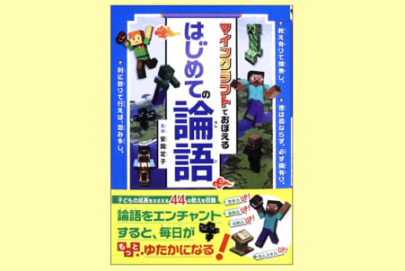 本書は、マインクラフトでの遊びを通して起こり得るさまざまな出来事について、「論語」の教えを通して、自身の在り方を考える内容だ。例文を読み、自分はどうするかを二つの選択肢から選ぶ。