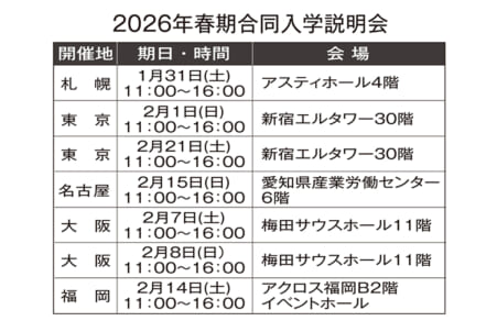 「令和8年春期合同入学説明会」を開催 1月24・25日には、オンライン合同入学説明会も