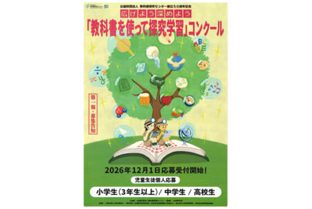公益財団法人教科書研究センター(千石雅仁理事長)は、今年設立50周年の記念事業として、「広げよう深めよう『教科書を使って探究学習』コンクール」を開催する。