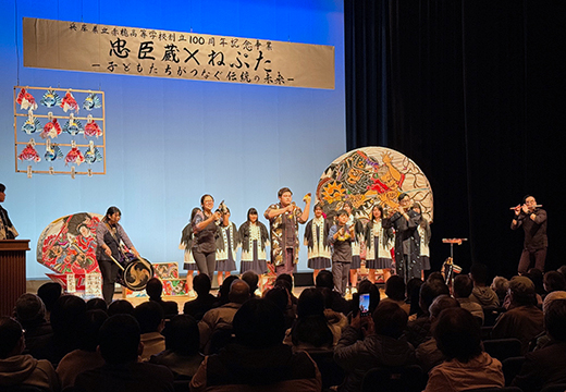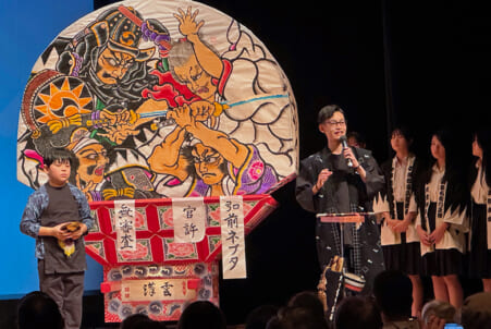 全国放送のテレビ番組で「ねぷた博士ちゃん」として知られる中学生ねぷた絵師・菊池虎太朗君(14)らを招いた赤穂義士祭の関連イベント「忠臣蔵×弘前ねぷた―子どもたちがつなぐ、伝統の未来―」(日本教育新聞社ほか後援)が、昨年12月12日、兵庫県赤穂市内で開催した。