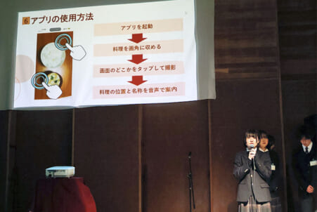 視覚障害者のためのWebアプリの研究を発表する生徒=昨年11月29日、柏の葉高校 平成19年の開校以来実施 千葉県立柏の葉高校 平成19年の開校以来、情報理数科の研究発表会を20年近く実施してきた千...