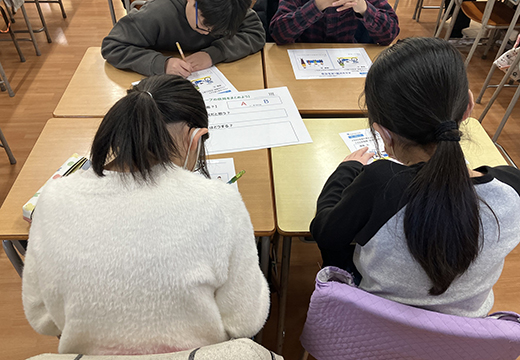 授業では、両社の取り組み事例を動画やクイズを交えて紹介。また、グループワークでは脚が不自由で困っている人のイラストを見て、自分ならどうするか?など児童たちで話し合い発表した。