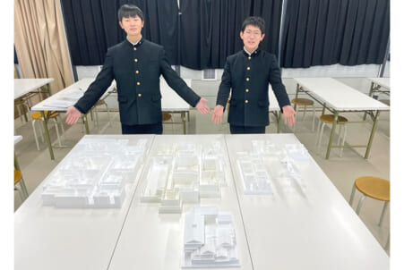 この活動は校内でも注目を集め、現在3年生の大野好翔さんと水本知希さんら自然科学部の面々は意欲的に第2弾=道後温泉本館のジオラマ製作に挑戦した。「触った人がワクワクできるように」との思いで何度も現地調査へ。風呂や湯釜、個室や通路など、3階建ての複雑な構造を細部まで再現し、運搬に便利な組立式とした。