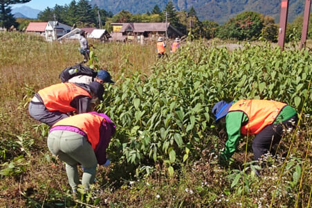 現地で行う自然保護、環境保全学習プログラムの内容は、「外来種駆除」「登山道の整備」など。併せて、環境省職員による国立公園についてのレクチャーも受けられる。