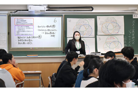 ベン図を用いて評論の共通点を整理する授業を展開した鶴口夏菜教諭=2月6日、同校 名古屋大学附属中学・高校 研究発表会から(上) 名古屋大学教育学部附属中学・高校(柴田好章校長、生徒600人)は他者と...