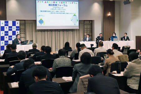 能登半島地震で被災した学校の校長らを招いたパネルディスカッション=2月7日、都内で 北海道豊浦町の小学生 11日で東日本大震災の発生から15年。これからの災害に備える上で、学校教育はもとより、地域社...