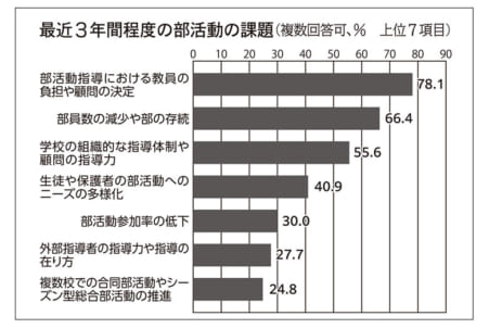 最近3年間の部活動巡る課題 「教員負担や顧問決定」8割 全日本中学校長会調査研究報告書(下)