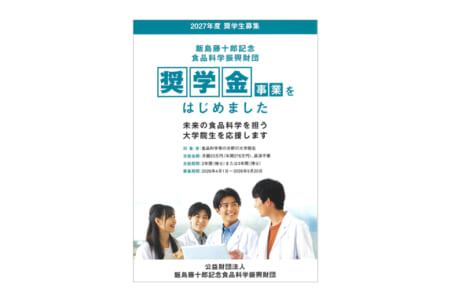 公益財団法人飯島藤十郎記念食品科学振興財団(千葉県市川市)は、2026年度に食品科学分野の大学院生を対象とした奨学金事業を開始し、現在2027年度生の募集を行っている。月額23万円(年間276万円)、返済不要という充実した支援内容が注目される。