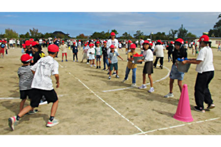 「減災・防災運動会」のプログラムでバケツリレーをする児童たち 平成27年、大手ゼネコンから校長の立場で教育の世界に飛び込んだ古谷俊之・堺市立新檜尾台小学校校長(児童261人)。大分県の公立中学校2校...