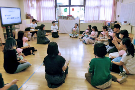 保護者会の中で親子での触れ合い遊びを行う 令和6・7年度の2年間「親子での触れ合い遊びを通して子どもの豊かな感性を育むための調査研究―心も体もわくわく親子で向かい合って楽しもう!」に取り組んだ、全国...
