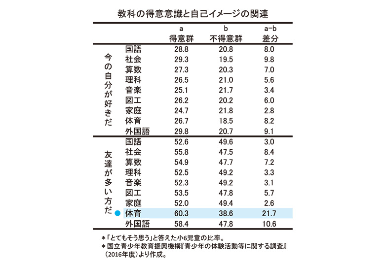 2面記事 子どもの自尊心は勉強の出来と相関するが、勉強といっても複数の教科がある。 小学校6年生を各教科の得意群・不得意群に分け、「今の自分が好きだ」と答えた者の率を比べると、社会と外国語で差が比較的大きい…