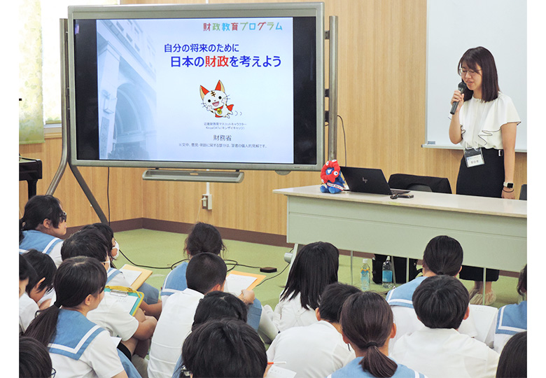 児童に財政について説明する財務省職員 一般社団法人全国国立大学附属学校PTA連合会(全附P連)と財務省が連携して開発した財政教育プログラムの研究授業が2日、大阪教育大学附属平野小学校で行われた。財務…