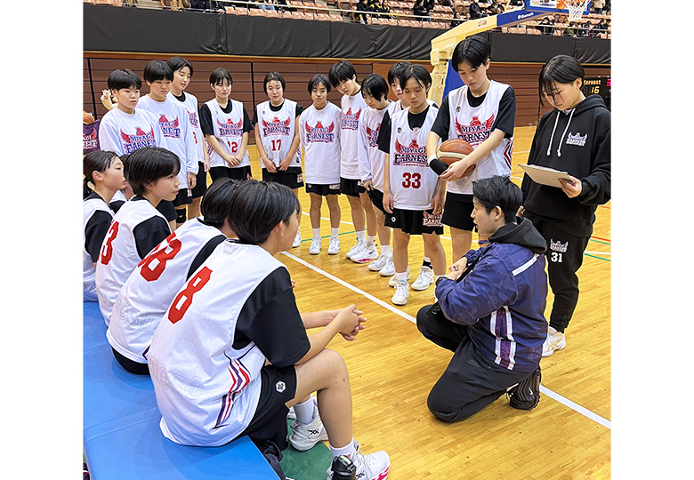 今年1月の「仙台市民バスケットまつり」で試合中にコーチからの指示を受ける選手たち 教員らが結成した強豪チーム 女子バスケットボールクラブ 仙台市ほか 仙台市を中心に活動する地域クラブ「Earnest…