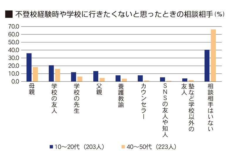 通信制高校に関する情報提供などを手掛ける民間企業の調査で、10~20代の4人に1人は自分に不登校経験があると考えていることが分かった。その保護者(親)の世代に当たる40~50代の意識と比べられるよう…