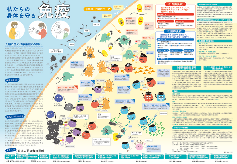 2面記事 大阪大 2年以上にわたる新型コロナウイルスの流行を踏まえ、大阪大学は感染症や免疫について子ども向けに解説する教材を開発した。中学生以上を対象にしたポスターは無償で利用できる。幼児や児童向けの絵本も制…
