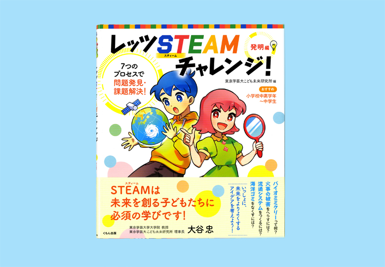 15面記事 東京学芸大こども未来研究所 編 登場人物は小学5年生のサクラとソラ、未来研究所の研究員。サクラとソラは未来研究所を見学しながら、研究員と一緒に、STEAM教育について「七つのプロセス」 ・自分にと…