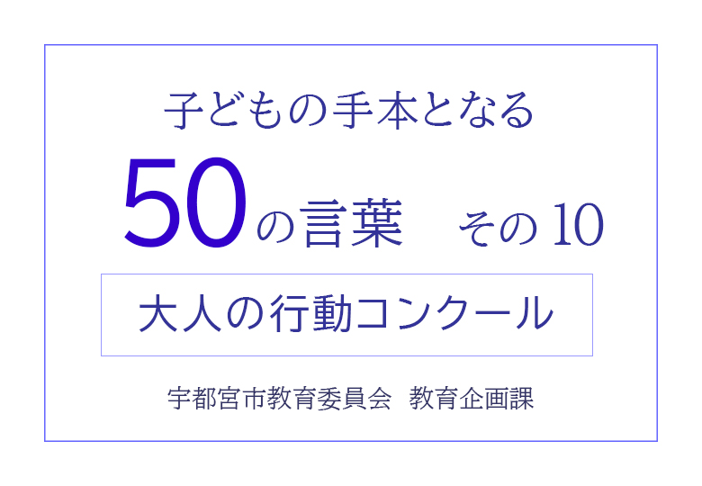 大人の行動コンクール 宇都宮市教育委員会 宇都宮市教育委員会では、社会総ぐるみによる人づくりを一層推進するために、大人が子どもの手本として行動する拠り所として、「子どもの手本となる50の言葉」を選定…
