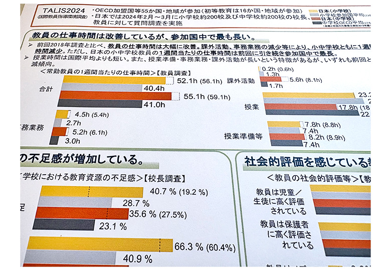 経済協力開発機構(OECD)は7日、教員の勤務環境などについて調べる「国際教員指導環境調査」(TALIS)2024の結果を公表した。1週間あたりの勤務時間は前回調査時より約4時間減少したが、日本は2…