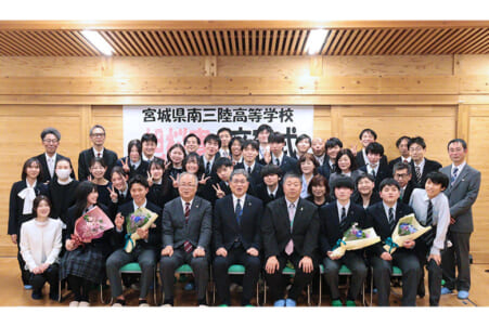 3月1日に南三陸町生涯学習センターで実施した全国募集の第1期生の卒寮式 東日本大震災後に魅力化を推進 宮城県南三陸高校 (上)  宮城県南三陸高校は、昨年度で創立百周年を迎えました。平成15年度から、...