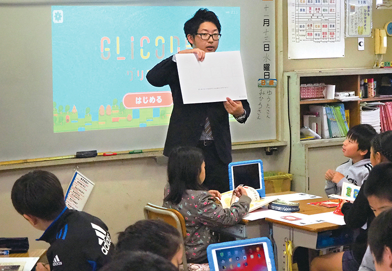 「グリコード」の使い方を説明する井上昇教諭 子どもに身近なお菓子を教材に楽しく取り組む 来年度に迫った小学校のプログラミング教育必修化。だが、全国の小学校では「どうやって教えたらいいのか」、「教材は…