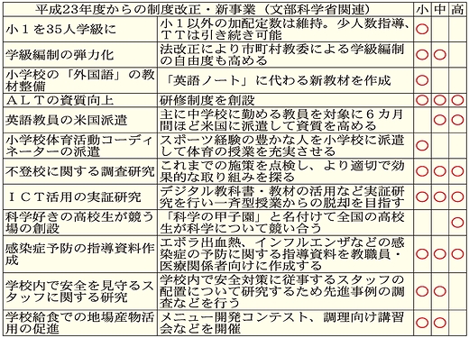 1面記事 12月24日に平成23年度政府予算案が閣議決定されたことを受け、文部科学省は本年4月以降に始まる新制度、新事業の具体化を始めた。小学校1年生の35人学級化に伴う法改正では併せて市区町村教委が独自に学…