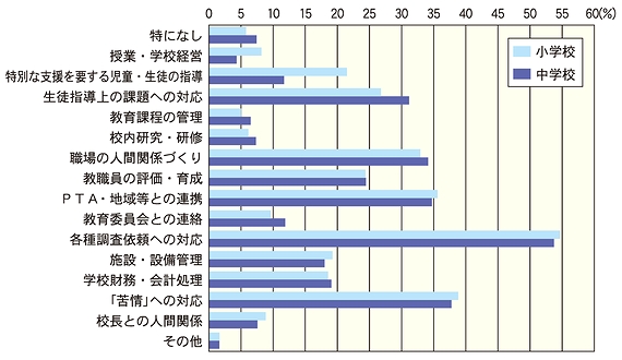 1面記事 全国公立学校教頭会調べ 全国の公立小・中学校の副校長・教頭の約9割が職務を通した心身の疲れを実感しており、1割以上が「よく眠れない」状態にあり、睡眠時間は7割以上が6時間未満―。こんな実態が、全国公…