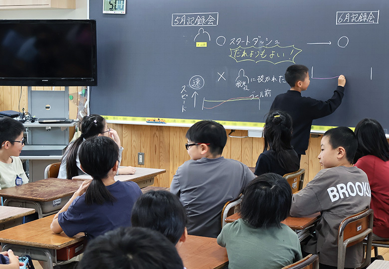 「くらしの時間」で目標達成に向け、自らの取り組みを紹介する児童 富山市立堀川小学校 (上) 自分は今どうしたいのか、これからどうありたいのか…。自らの「生き方」を追究し、行動を起こす子どもの姿に着目…
