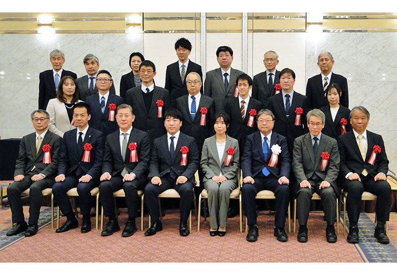 最優秀賞を受賞した石井教諭(前列左から4人目)、中安教諭(同5人目) 日本教育公務員弘済会が主催する「日教弘教育賞」の令和7年度個人部門で山形県酒田市立第一中学校の石井諭教諭と、兵庫県明石市立大久保…