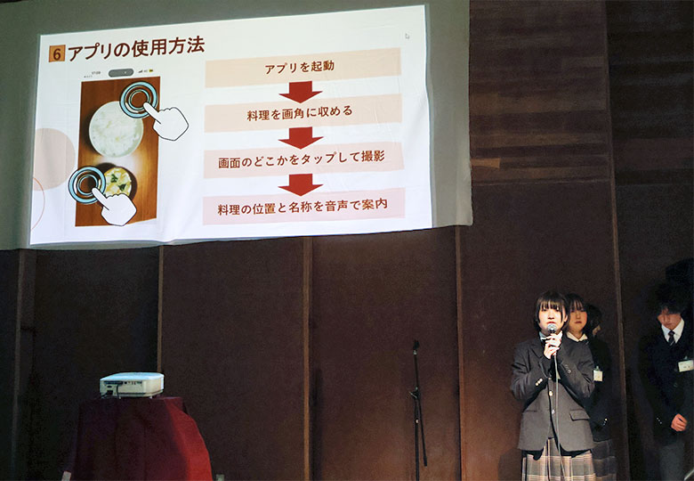 視覚障害者のためのWebアプリの研究を発表する生徒=昨年11月29日、柏の葉高校 平成19年の開校以来実施 千葉県立柏の葉高校 平成19年の開校以来、情報理数科の研究発表会を20年近く実施してきた千…