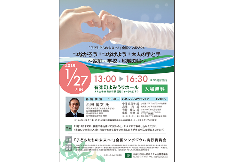 幼稚園、小・中学校、高校のPTA組織、各校種の校長会、日本教育新聞社などで構成する「子どもたちの未来へ!」全国シンポジウム実行委員は27日午後1時から有楽町よみうりホールで、教育シンポジウムを開催す…