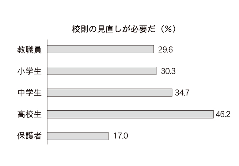 12面記事 校則見直し、教職員3割が「必要」
