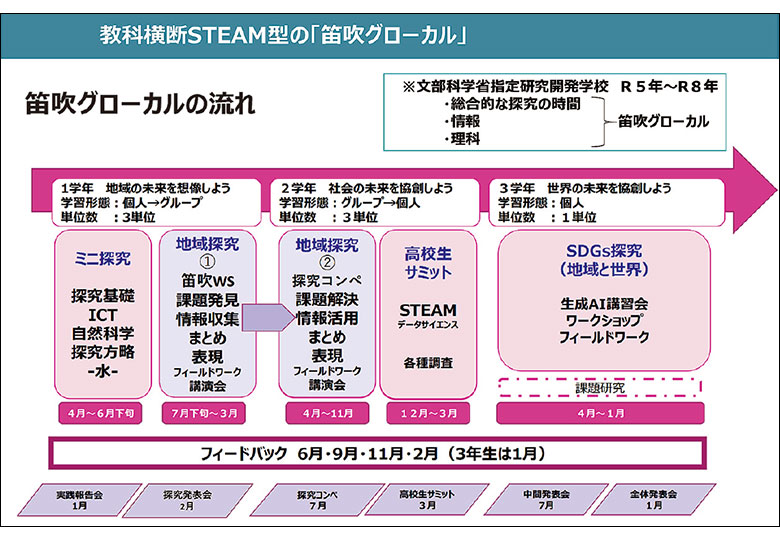 12面記事 学科の壁を越えた学び構築 山梨県立笛吹高校の「笛吹グローカル」