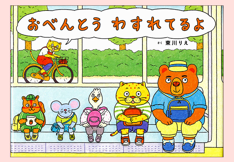 東川りえ 作 今日は、チーターのちいた君がみんなと遠足に行く日。家を出て駅に行き電車に乗った。 玄関で見送ったママチーターは、ちいた君がお弁当を忘れたことに気が付いた。 「さあ大変、届けなくっち…
