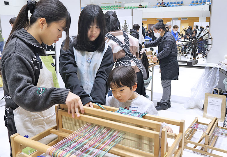 1面記事 機織り体験、高校生が指導 ものづくりでフォーラム