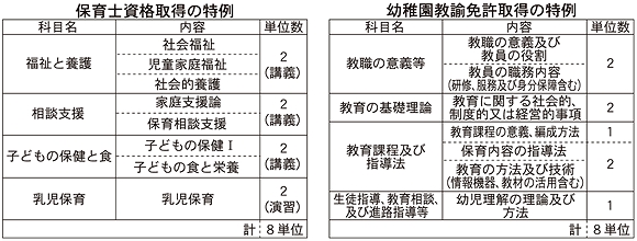 「保育教諭」の特例措置 子ども・子育て新制度で普及を目指す幼保連携型認定こども園で働く「保育教諭」をめぐり、資格取得の特例措置を検討してきた文部科学、厚生労働両省の検討会はこのほど、経験者であれば8…