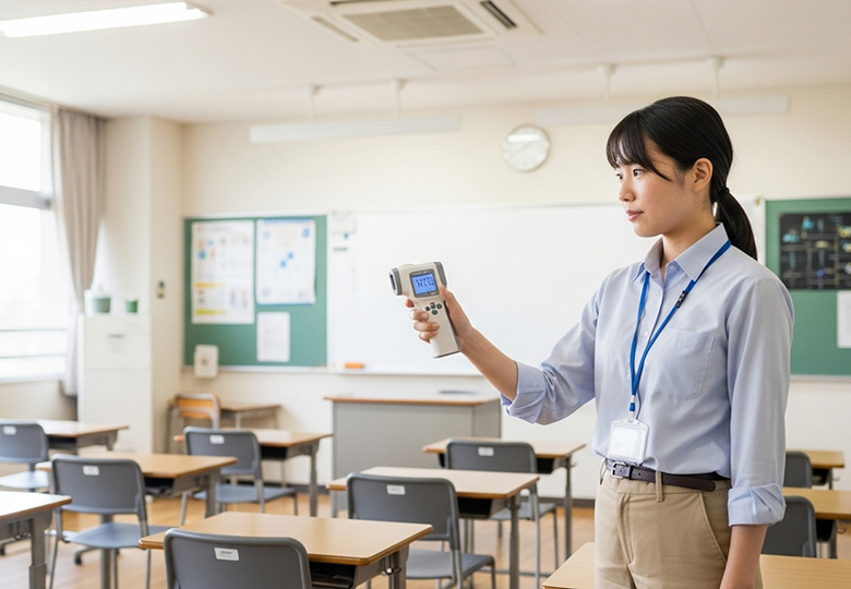 CO2モニターを使って教室の換気状況を把握する 室内環境を清潔に保つ設備・機器の導入を 冬季は室内の乾燥が進み、学校ではインフルエンザや新型コロナウイルスなど、さまざまな感染症の集団感染リスクが高ま…